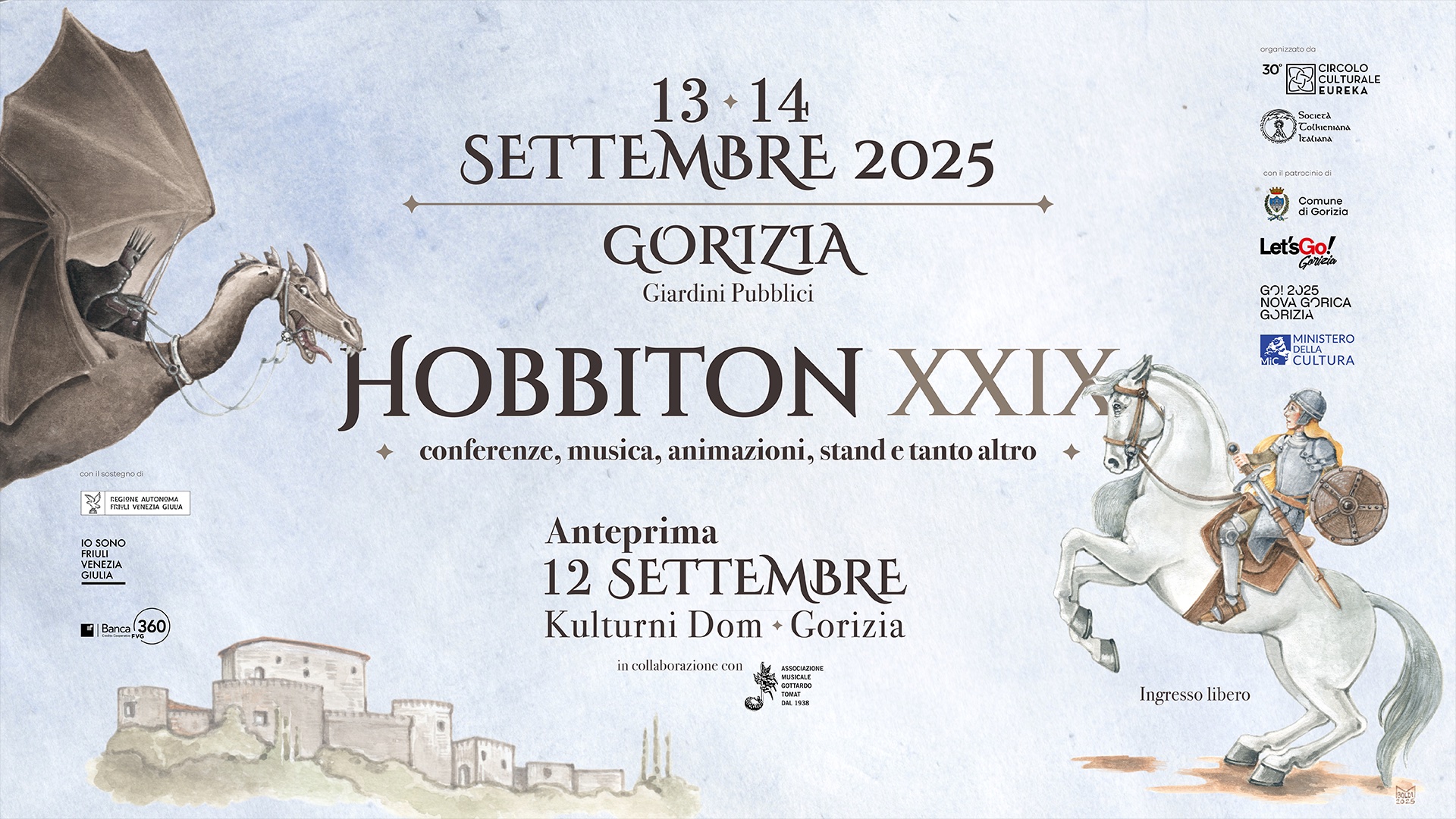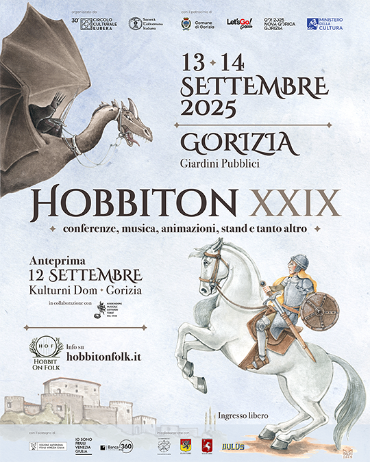 Un’anteprima il 12 sera per poi proseguire con il 13 ed il 14 settembre che saranno i giorni più intensi della XXIX^ edizione di Hobbiton. L’edizione 2025 si svolgerà a Gorizia nell’anno in cui la città festeggia la Capitale Europea della Cultura. Ci saranno tante conferenze su temi legati al mondo della Terra di Mezzo, animazioni, musica, laboratori, mercatini e area food.